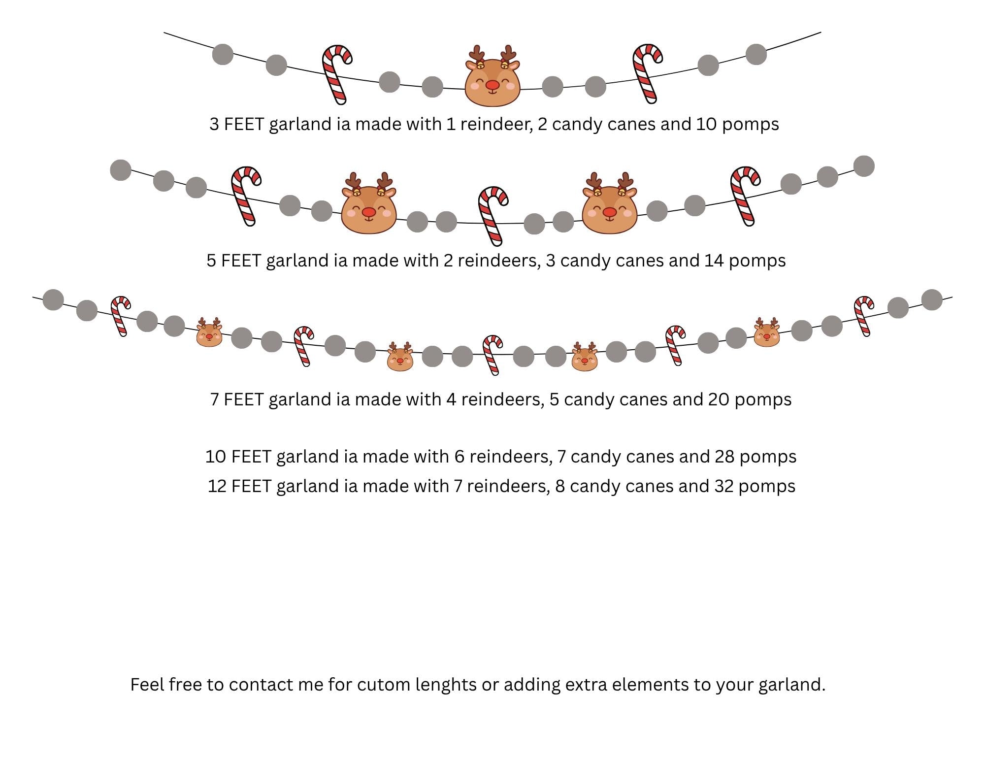 - 10ft (3 m) length - made with 28 pomps, 6 reindeers, 7 candy canes