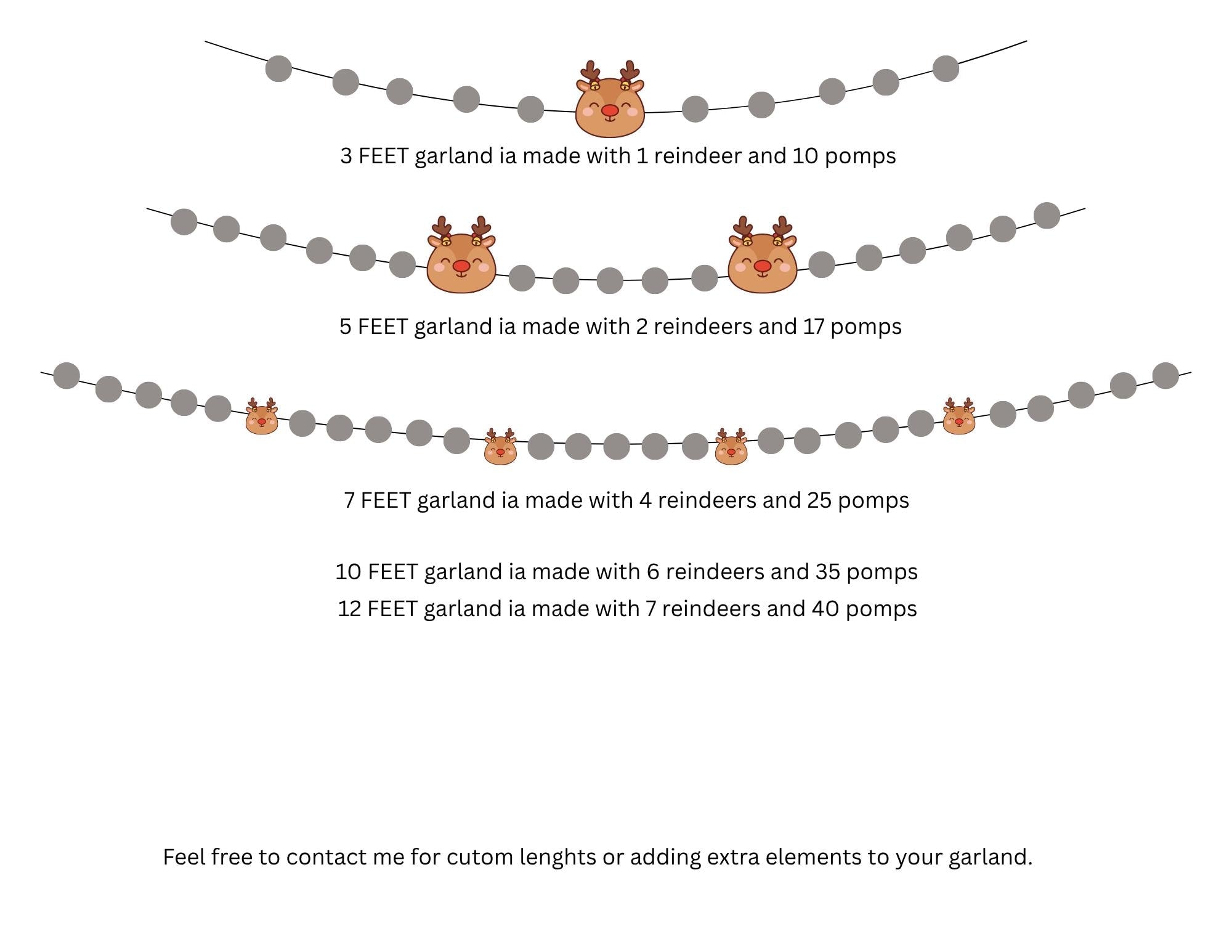 - 3ft (0.9 m) length - made with 10 pomps, 1 reindeer